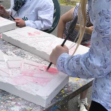 Répartis en deux ou trois ateliers, l’expérience artistique a été axée sur une approche de la sculpture et du bas-relief, déclinés de diverses manières : modelage en argile, assemblage de carton, moulage en plâtre, bois sculpté et gravé, etc. Une confrontation à la matière et à la couleur qui a ravi les jeunes artistes.